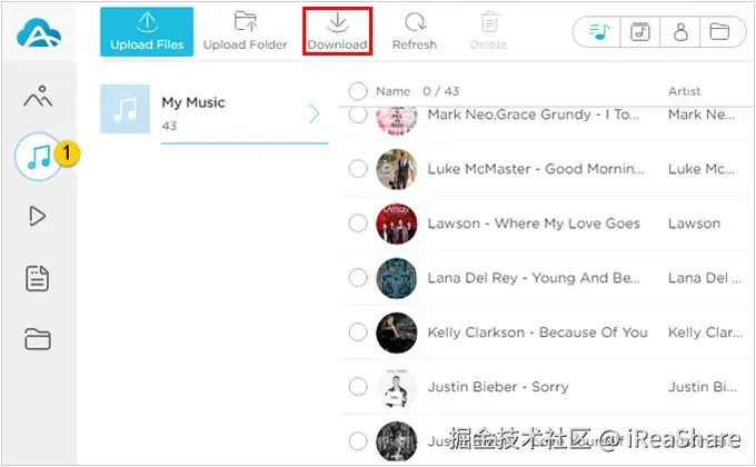 如果您需要一款灵活的音乐传输工具, iReaShare iPhone Manager将是理想之选。它允许您在传输前预览 iPad 上的音乐。此外,它还能在不损失任何音质的情况下传输歌曲,并且传输后的音乐不会覆盖您电脑上已有的音乐。