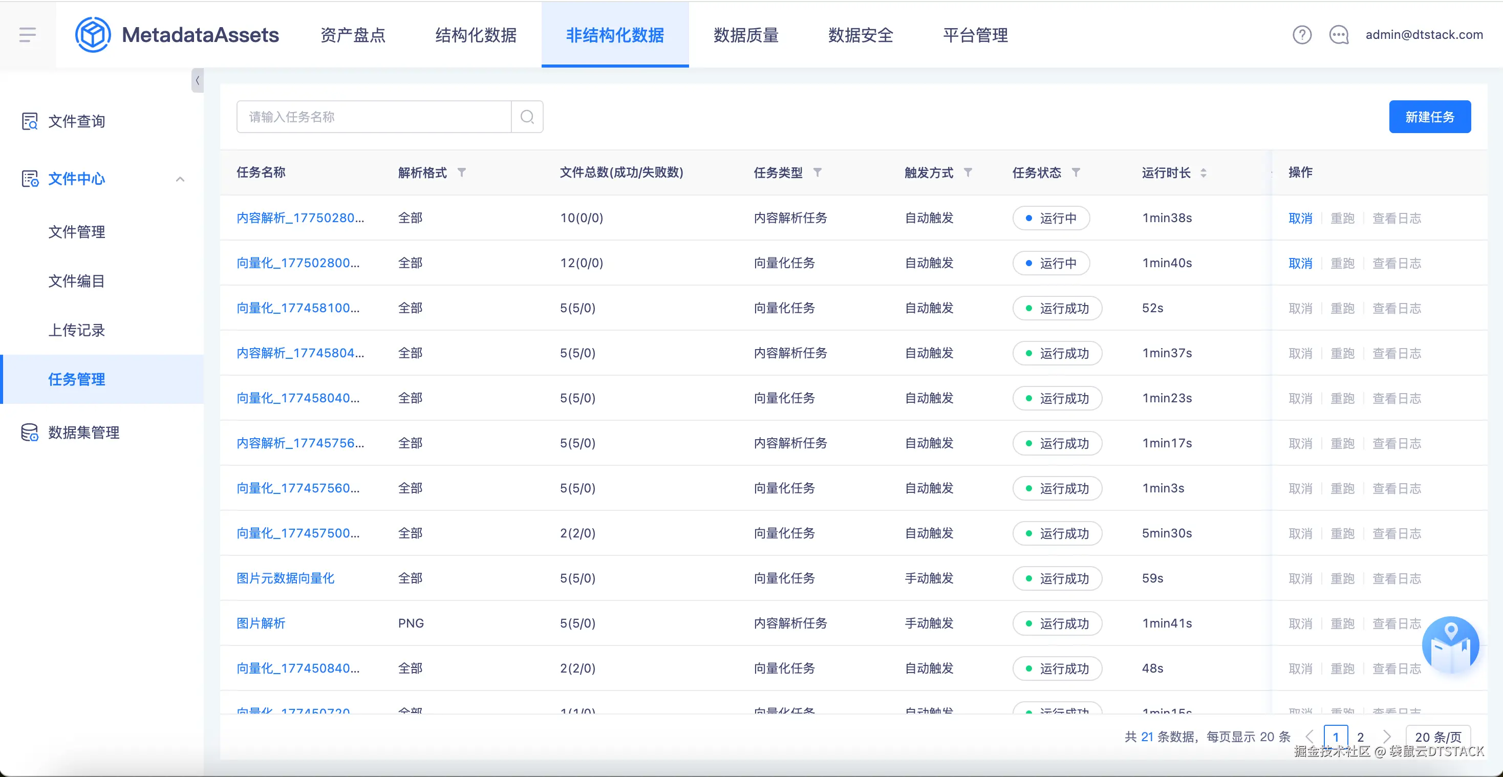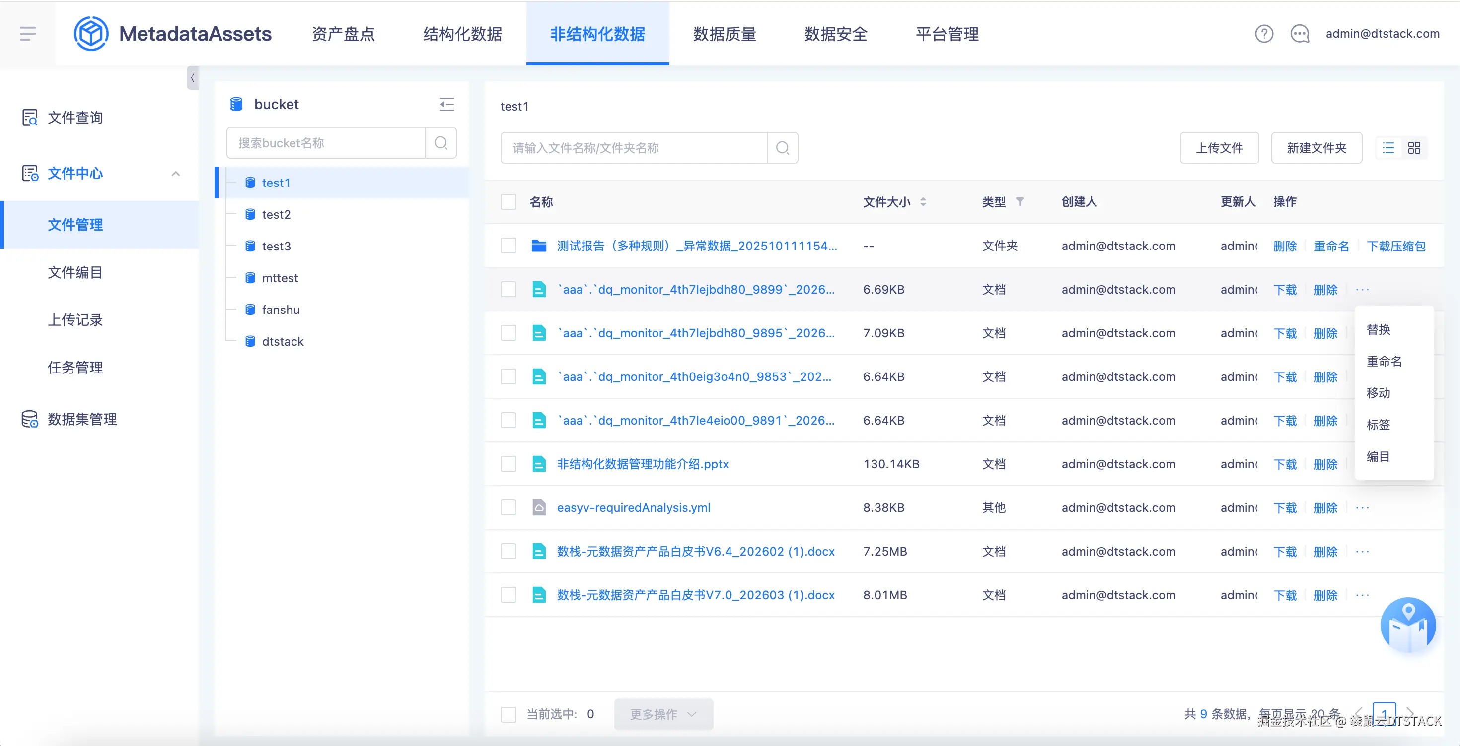 - 元数据提取:提取文件名称、描述、文件编目、标签、路径、更新时间、更新人等文件的元数据信息。