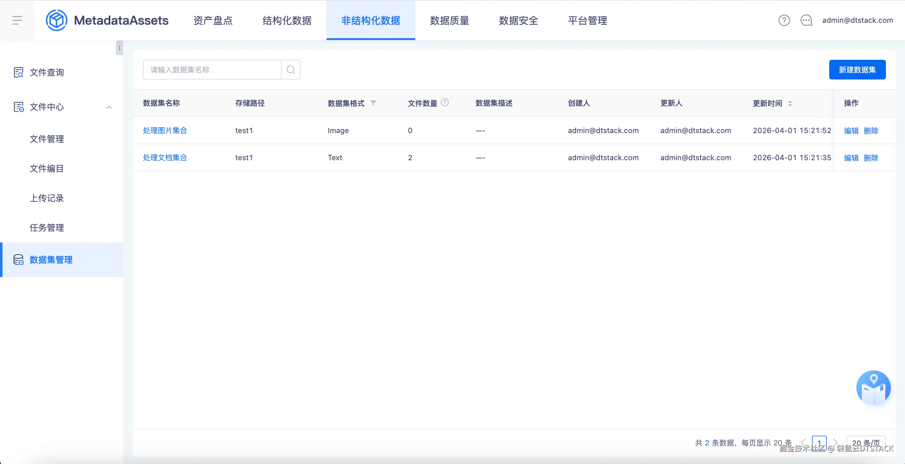 - 数据预览:查看数据集内的文件列表、文件详情、文件描述等信息。