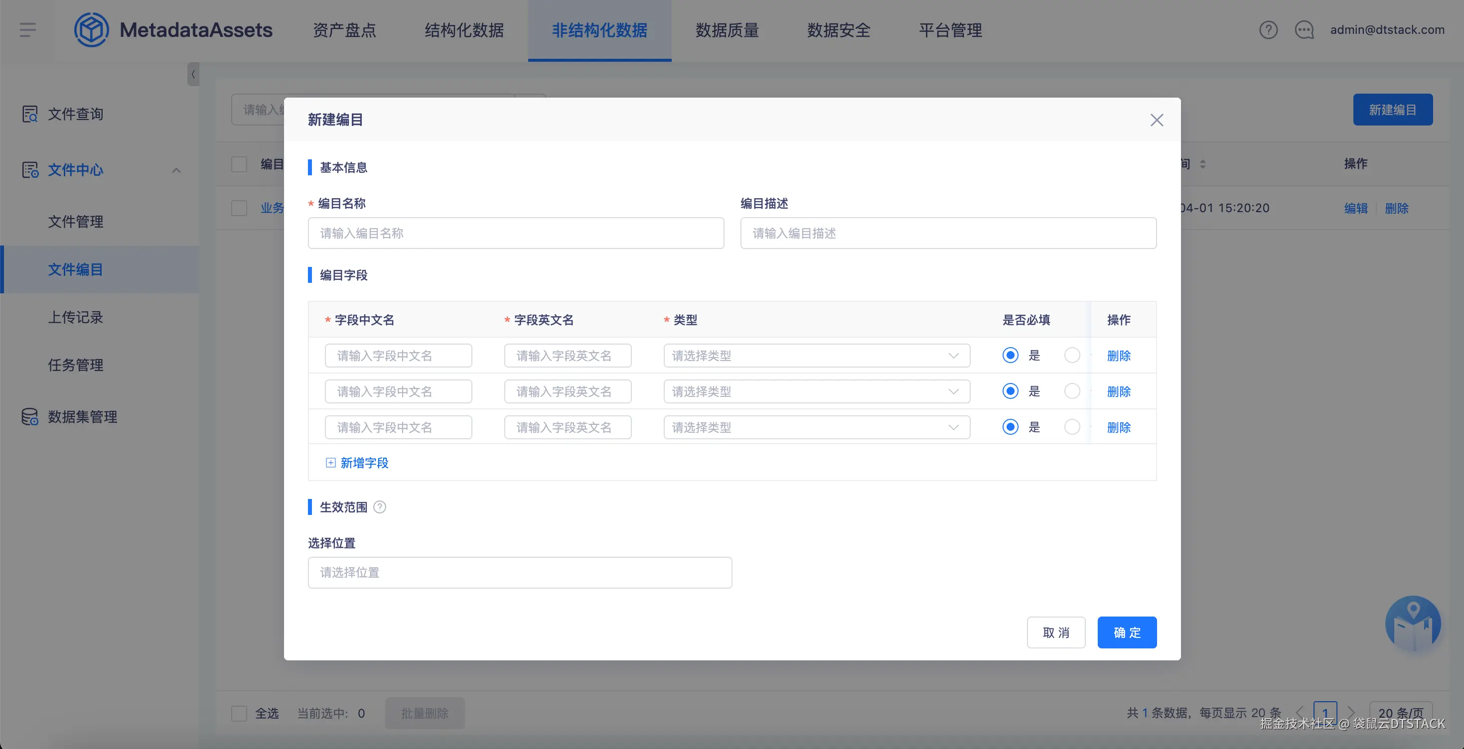 - 文件质量控制:支持设置编目的生效文件范围,符合要求的文件需要在上传时定义文件的编目信息。
