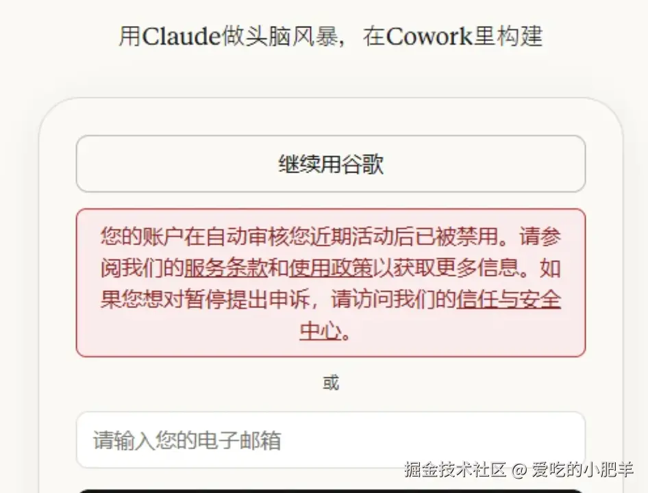 更要命的是,封号之前不会有任何预警,你正在跟 AI 讨论一个 bug 怎么修,下一秒页面就给你弹一个 account suspended。