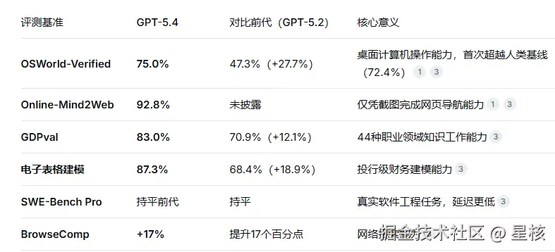GPT-5.4在多项关键基准测试中实现质的突破,数据来源为OpenAI官方及第三方机构(2026年3月):