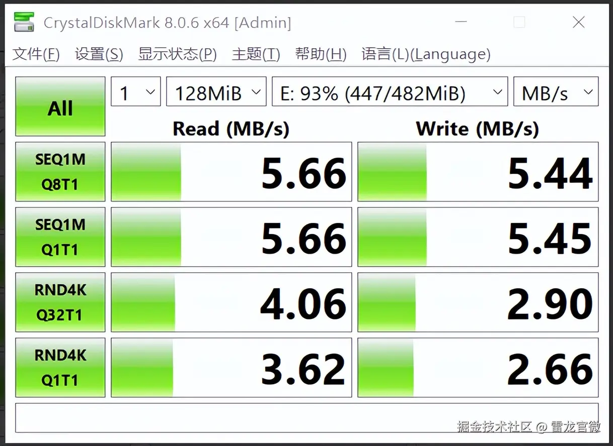 顺序读取(如播放本地视频文件)与顺序写入(如更新动画内容至存储设备)均可达约5.5MB/s的稳定传输速率