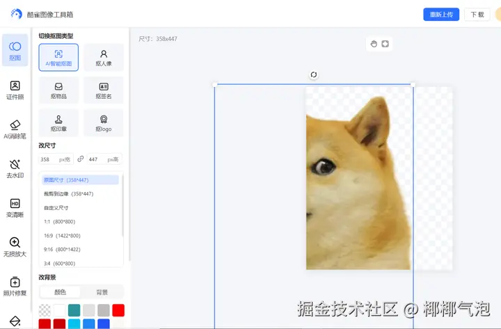 - 多尺寸自动适配——一张抠好的主体,一键生成小红书封面、抖音视频框、微博头图等多尺寸版本。