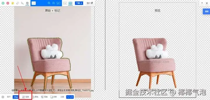 主体和背景颜色相近时,自动识别容易失效,这款工具的手动标记更精准。