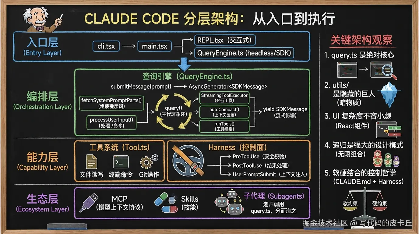 Claude Code 的源码结构清晰地反映了其分层架构思想,从顶层的用户交互到底层的工具实现,各司其职。