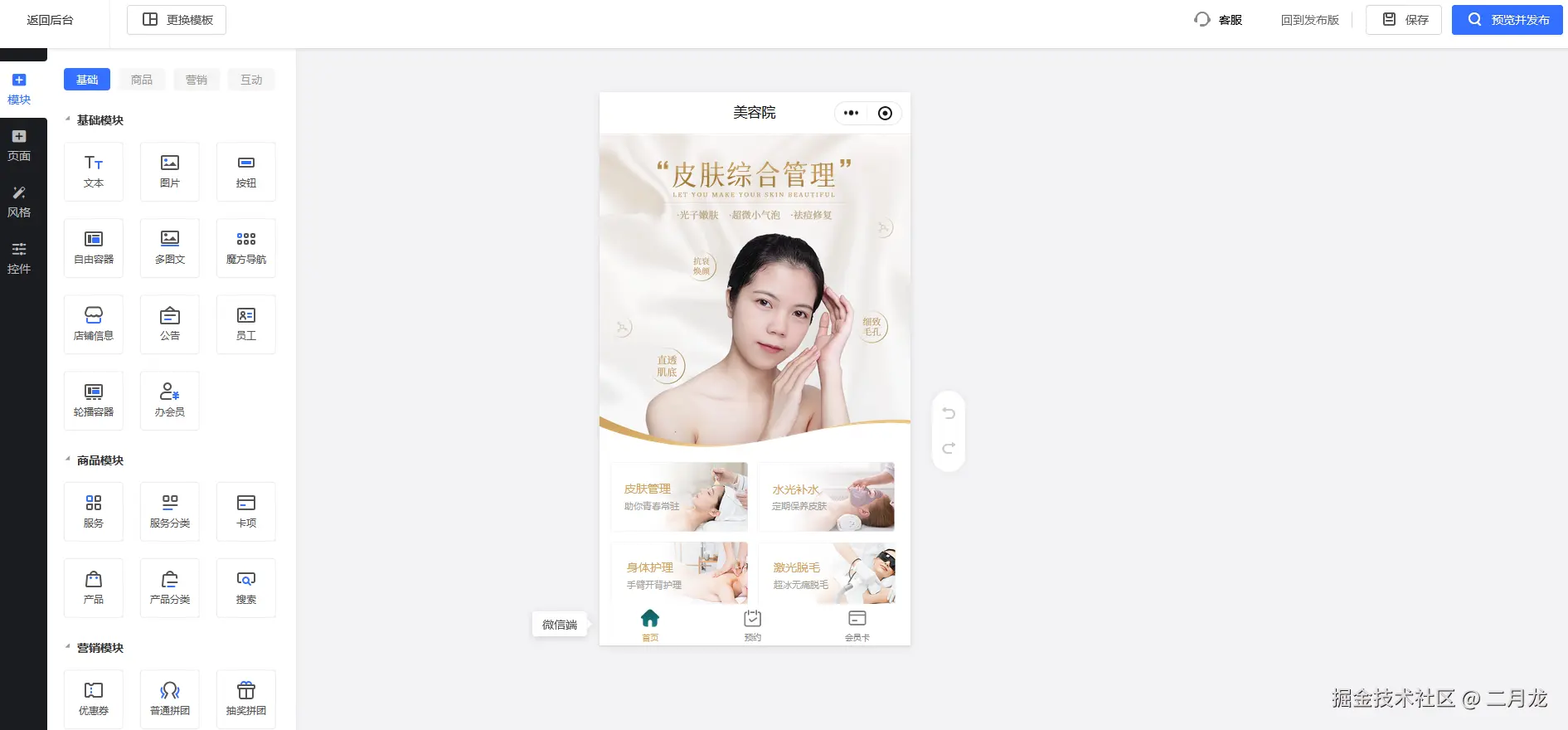 码云数智以“低成本、轻量化、易落地”为核心定位,专为美业、教培、健身房等注重“服务+预约”的行业设计。其功能覆盖会员等级划分、储值管理、积分兑换、线上预约、到店服务、前台收银、离店评价等全流程,会员数据实时同步,适配多业态基础运营。系统内置40余种标准化营销插件,如拼团、秒杀、分销、优惠券等,支持30分钟内完成小程序搭建,新手商家可快速上手。此外,其模板库持续更新,支持自定义页面设计与功能插件扩展,满足个性化需求。