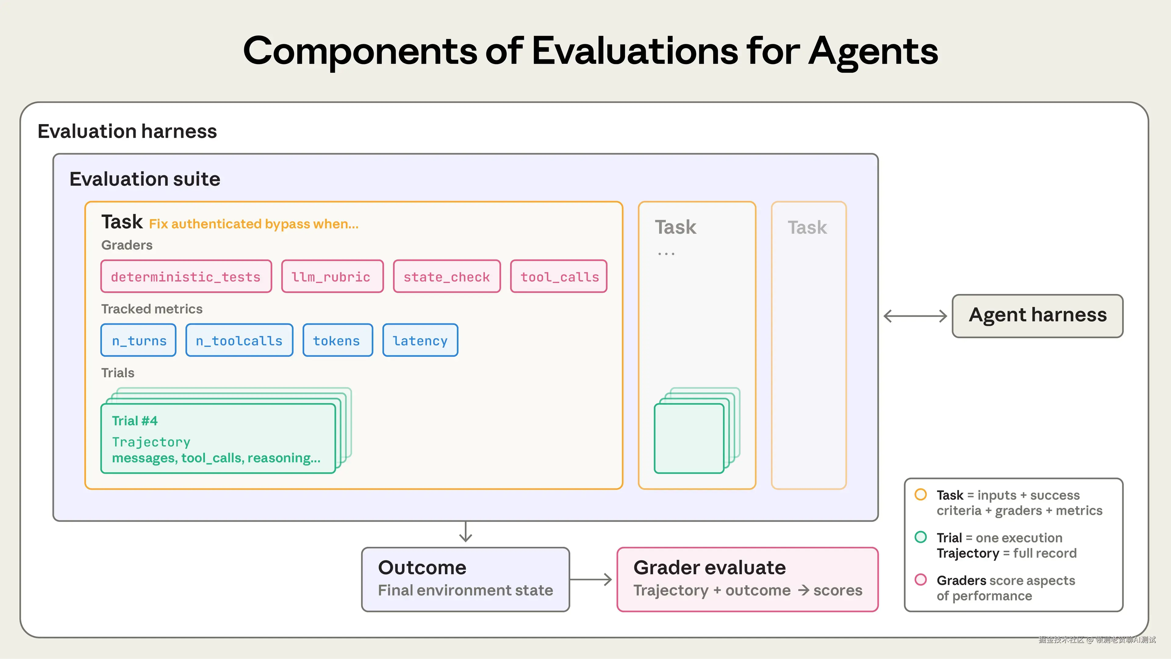 让评分器防绕过、防作弊,智能体无法轻易 “投机取巧” 通过评估。任务和评分器的设计应确保通过的前提是真正解决问题,而非利用漏洞。