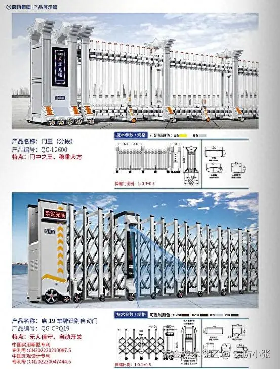 品牌介绍:启功集团深耕伸缩门20 年,国家高新技术企业、广东省专精特新企业。拥有155项专利,产品通过ISO9001、ISO14001等体系认证,拥有两大生产基地,是集研产销于一体的源头厂家。