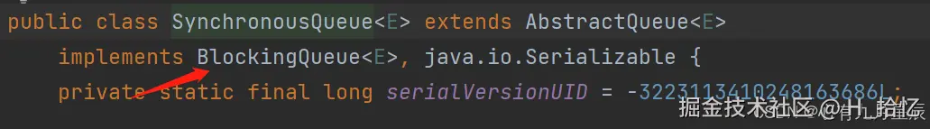 SynchronousQueue 类实现了 BlockingQueue 接口。