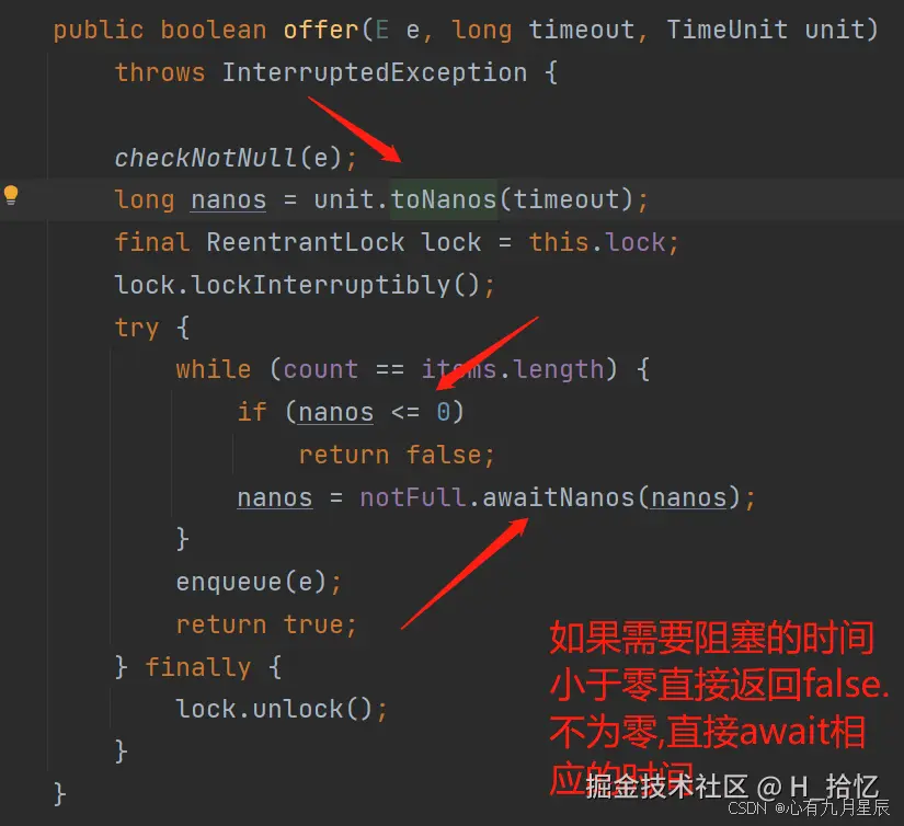 超时:如果试图的操作无法立即执行,该方法调用将会发生阻塞,直到能够执行,但等待时间不会超过给定值。返回一个特定值以告知该操作是否成功(典型的是 true / false)。