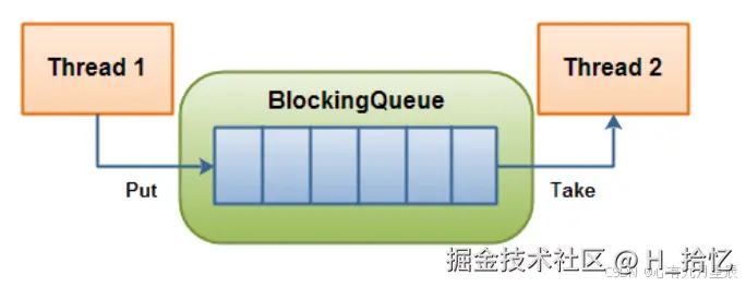 一个线程往阻塞队列里放资源.另一个线程进行消费.如果队列满的话,放入的线程会被阻塞.相反.如果队列为空,消费的线程就会被阻塞.