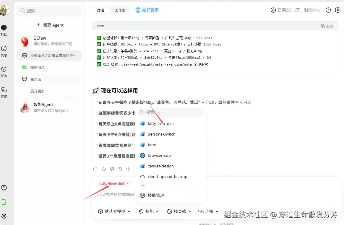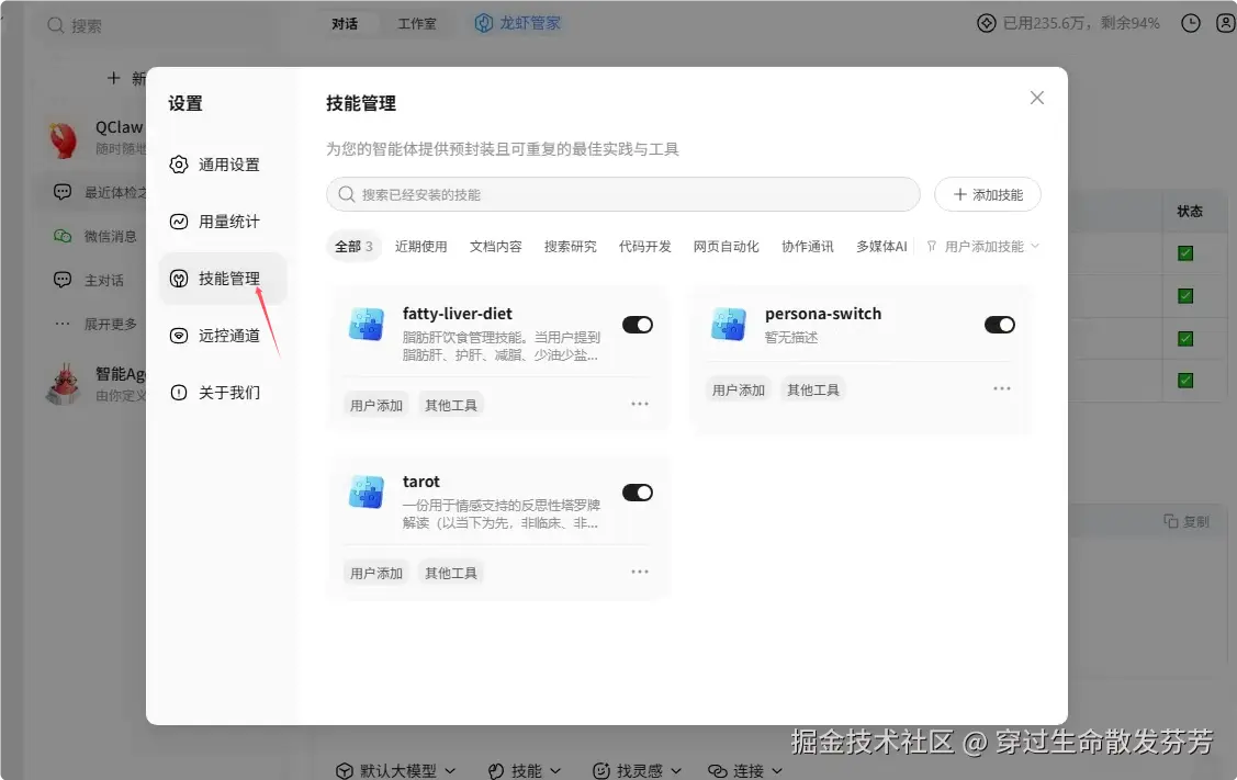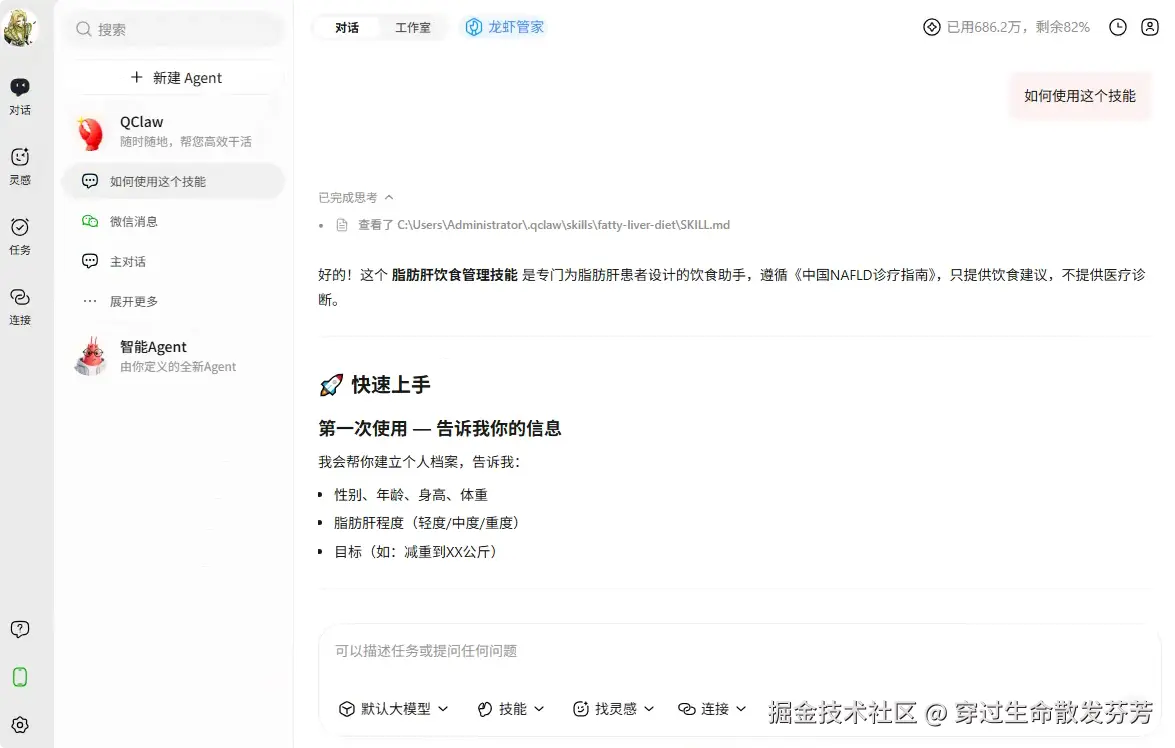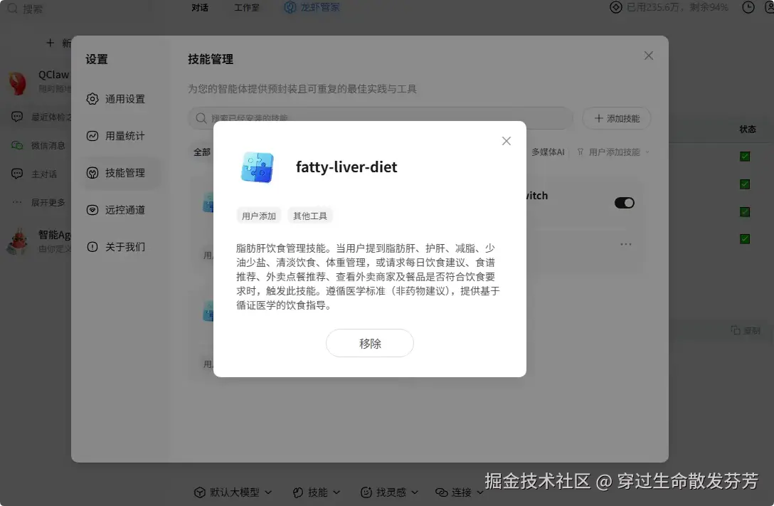 进入设置——技能管理,可以看到刚才生成的fatty-liver-diet技能。