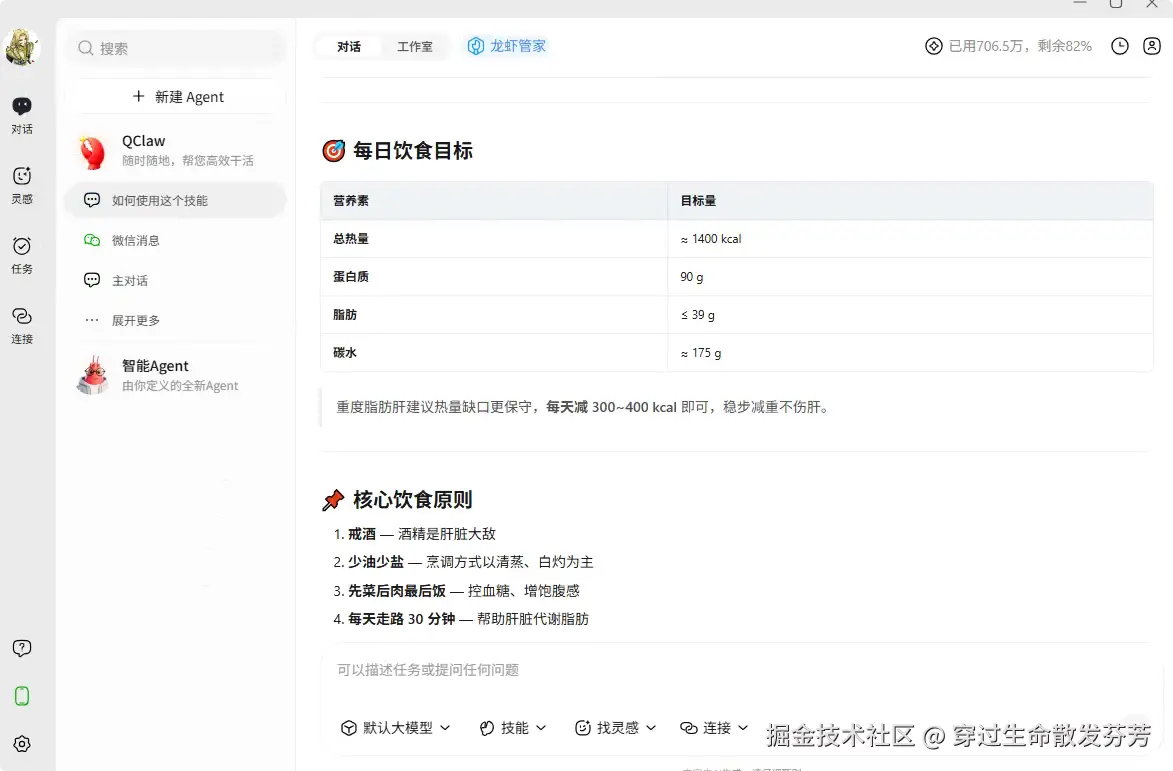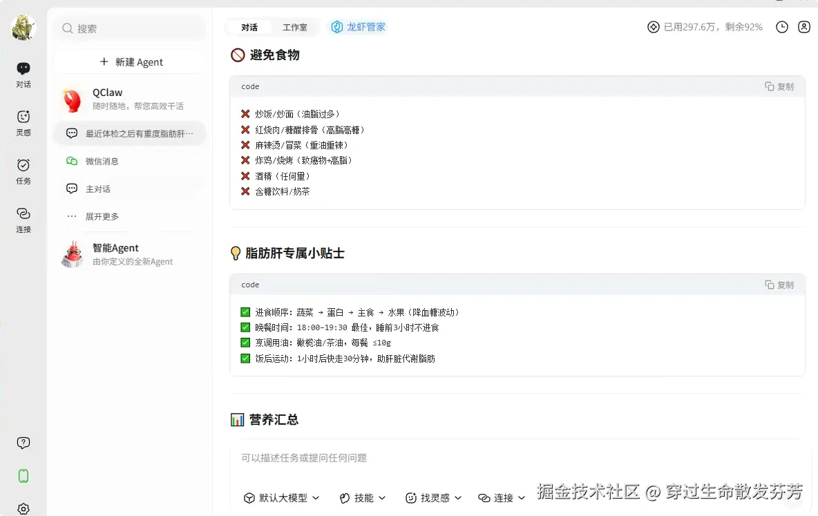 通过QClaw平台的强大能力,本Skill将成为脂肪肝患者的贴身健康管家,真正实现"让AI为健康服务"的愿景。本方案严格遵循医学标准,注重实用性和可操作性,为脂肪肝患者提供科学、温暖的健康管理体验大,但不提供医疗诊断。