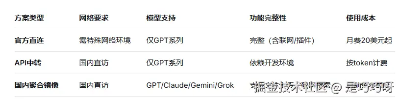 二、方案对比:国内用户访问ChatGPT 5.4的三种主流方式