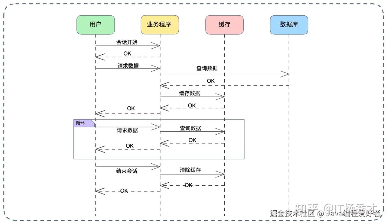 如果我们把缓存的生命周期稍微拉长一点,就变成了会话级别缓存。这非常类似于 Web 开发中传统的 Session。只要用户没有退出登录,或者会话没有过期,缓存的数据就一直有效。这种方案特别适合那些读取高频、但修改极低频的数据,最典型的场景就是用户的权限信息(RBAC) 。