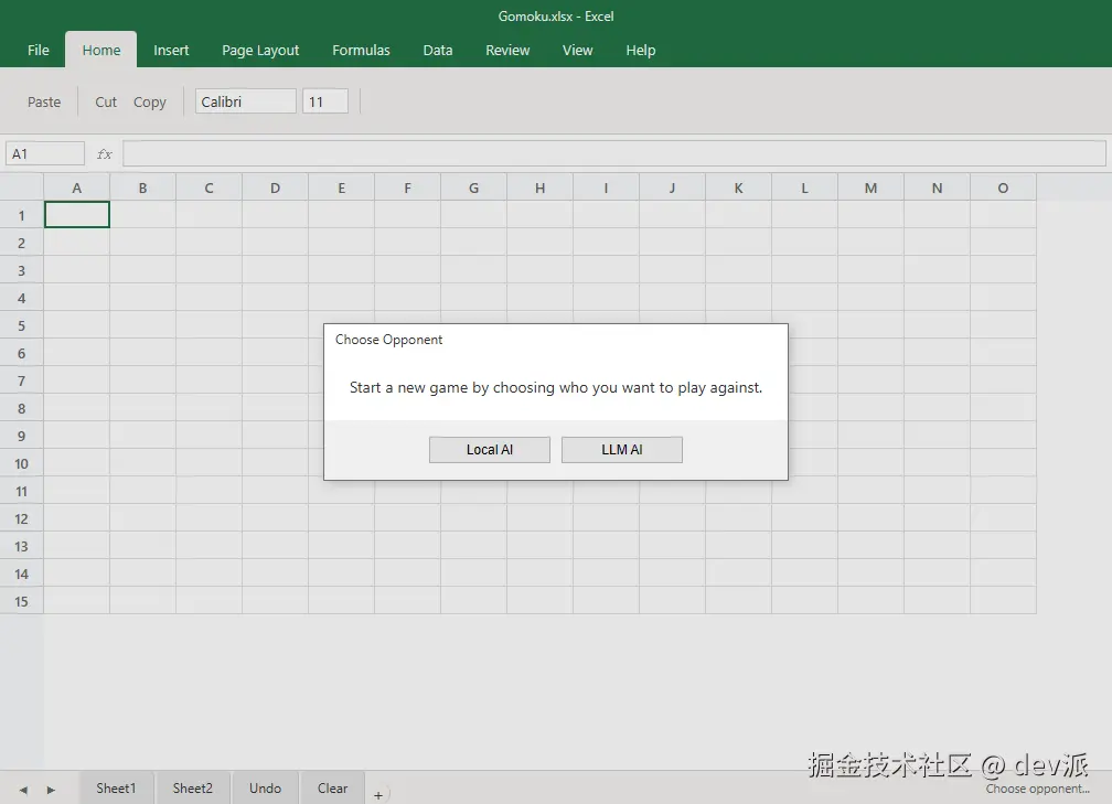 大模型返回类似(8,8)的坐标,后端校验合法性后,前端在对应的Excel格子里画个白子。