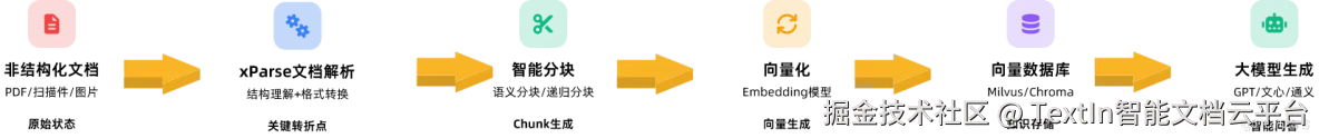 4. RAG 能力前置:TextIn xParse 不是单纯 OCR,而是Agent 接入知识的起点,直接补齐 RAG 最薄弱的文档解析环节;