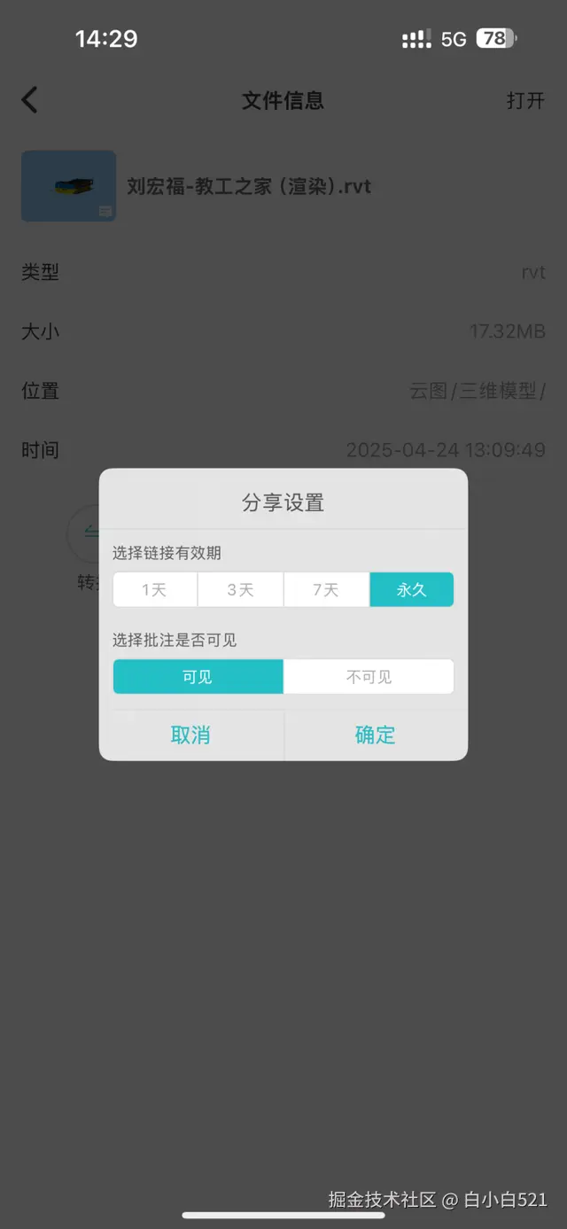 (3)一键分享:点击图纸分享,把带批注的模型链接发回给我。我点开,视角直接锁定在他标记的位置,问题一目了然。