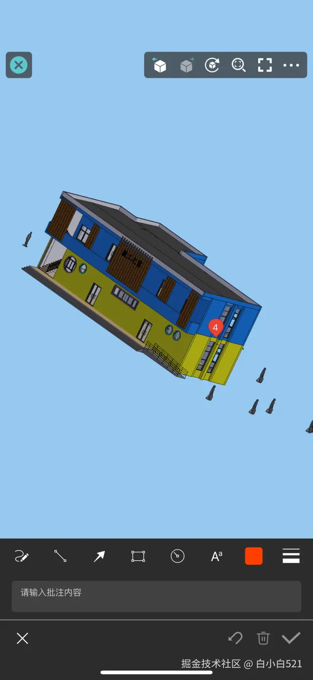 (2)添加【批注】 :点击下方【批注】→ 选【文字】或【箭头】等其他批注选项,直接在模型上标出,输入相关批注内容;