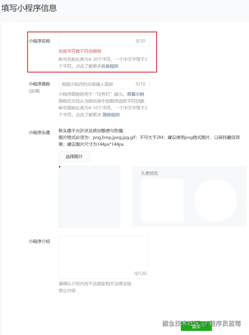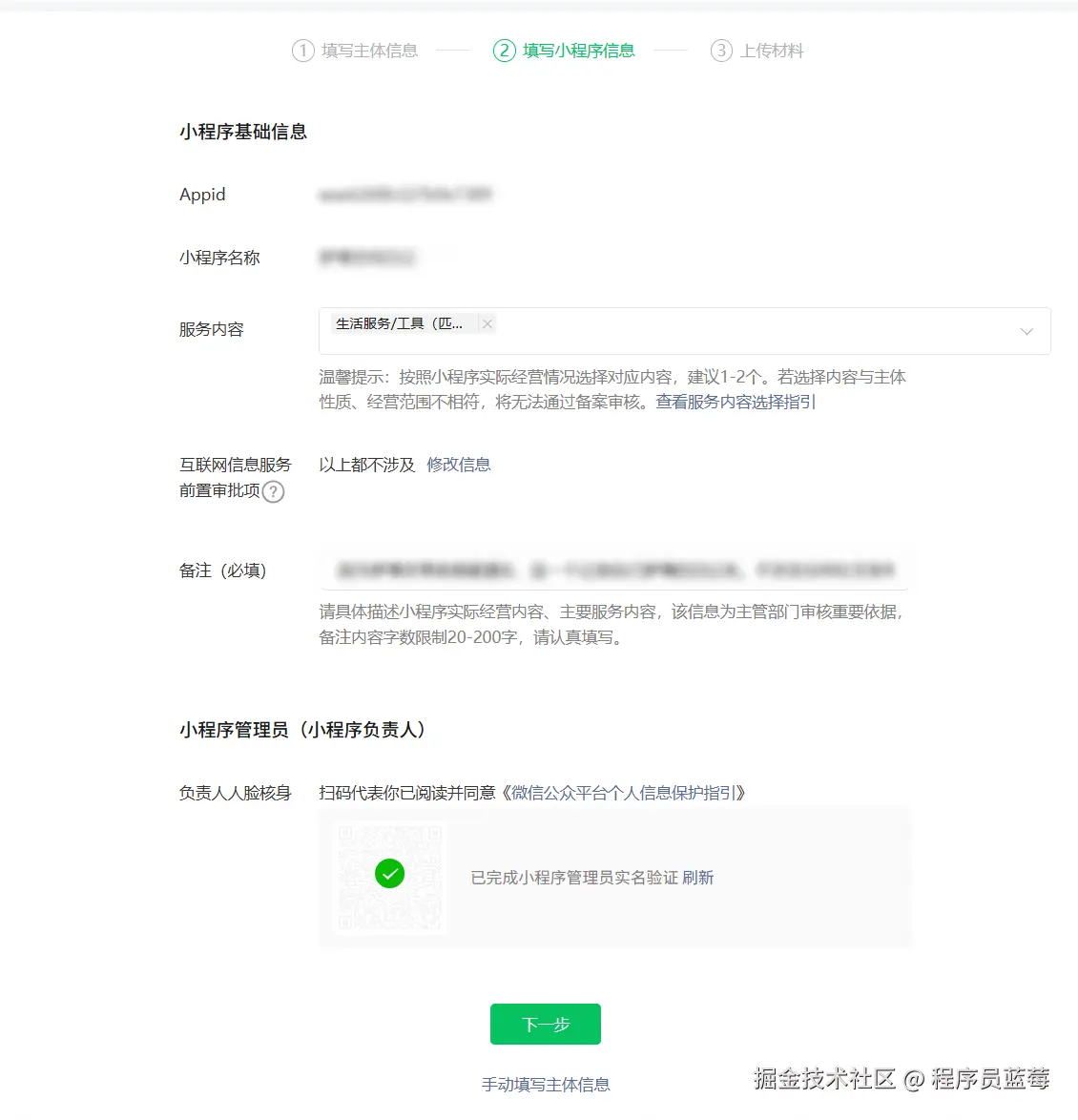 4.注册-填写小程序信息