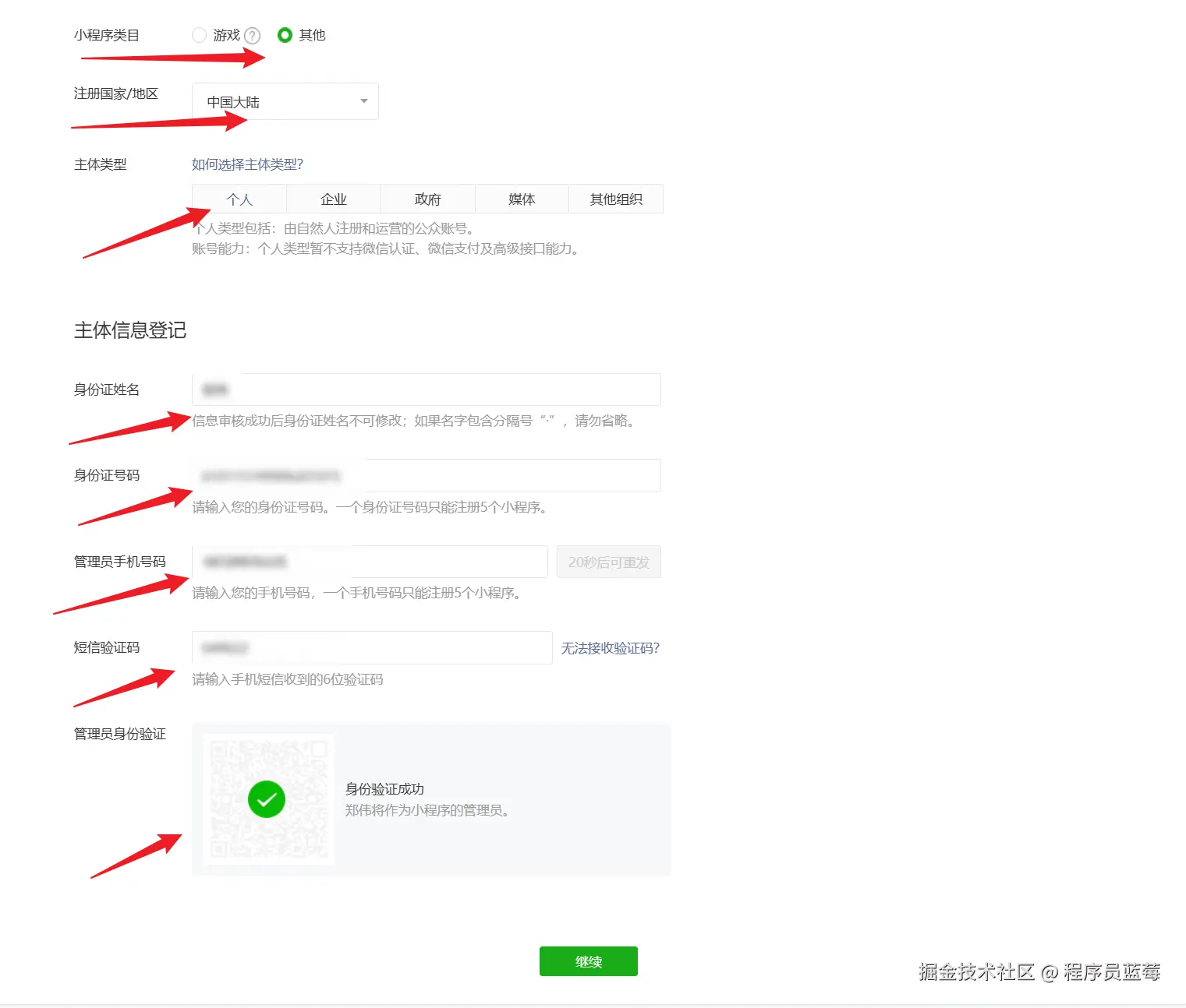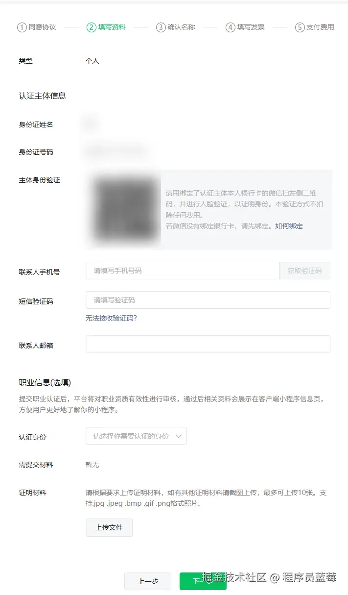 7.备案-填写个人信息: