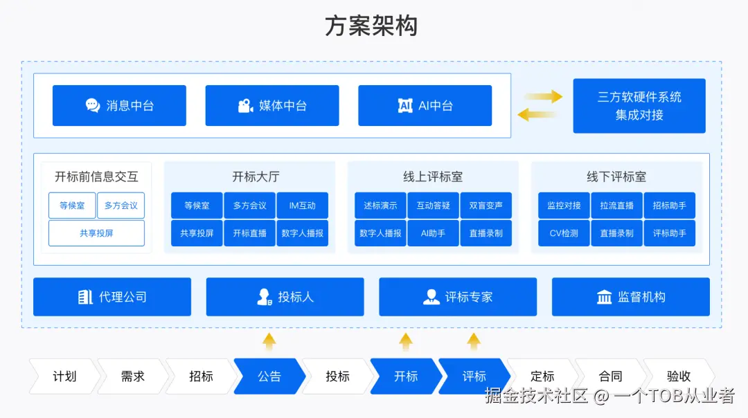第四,整合之难。 新的远程评标技术方案需要与单位现有的OA系统、电子招标采购平台、专家库系统等无缝融合,绝不能形成新的“数据孤岛”。如何实现用户、业务、数据的平滑对接,避免采购与IT部门陷入复杂且成本高昂的集成开发?