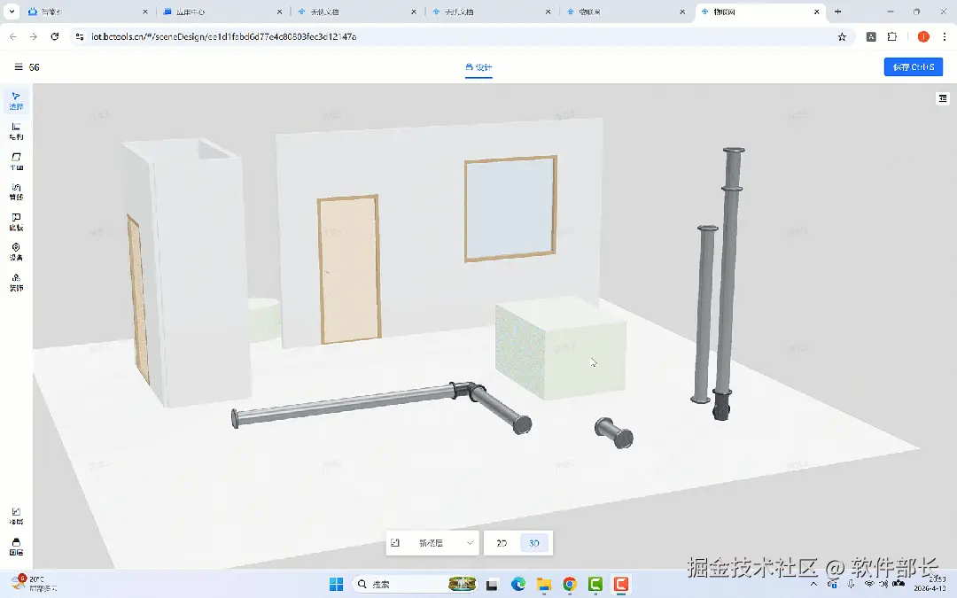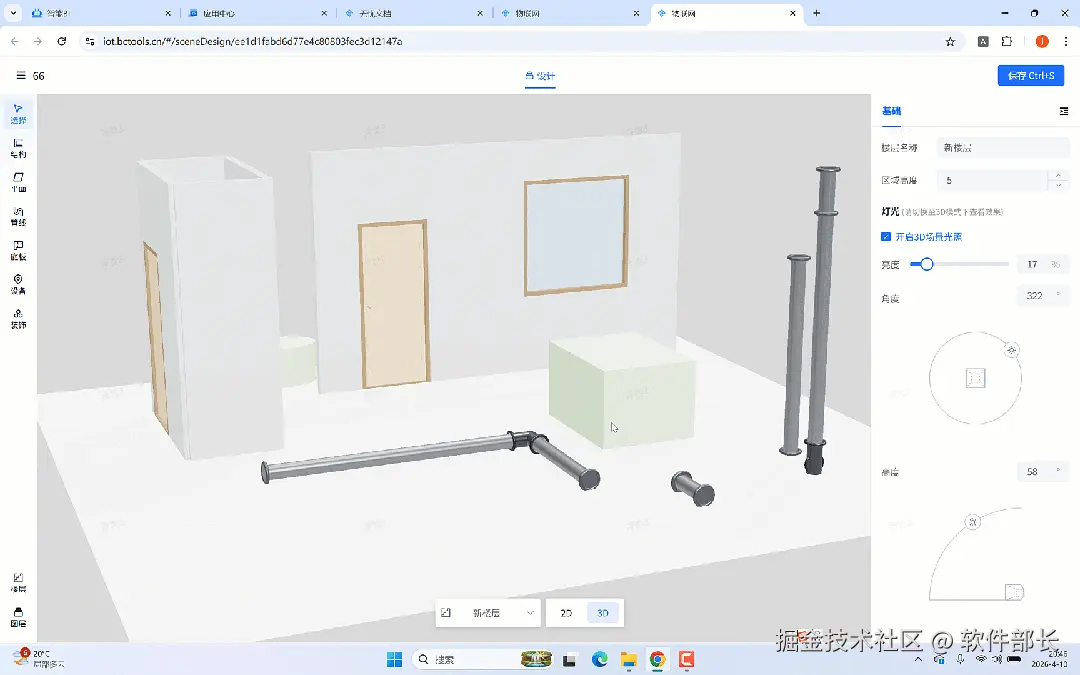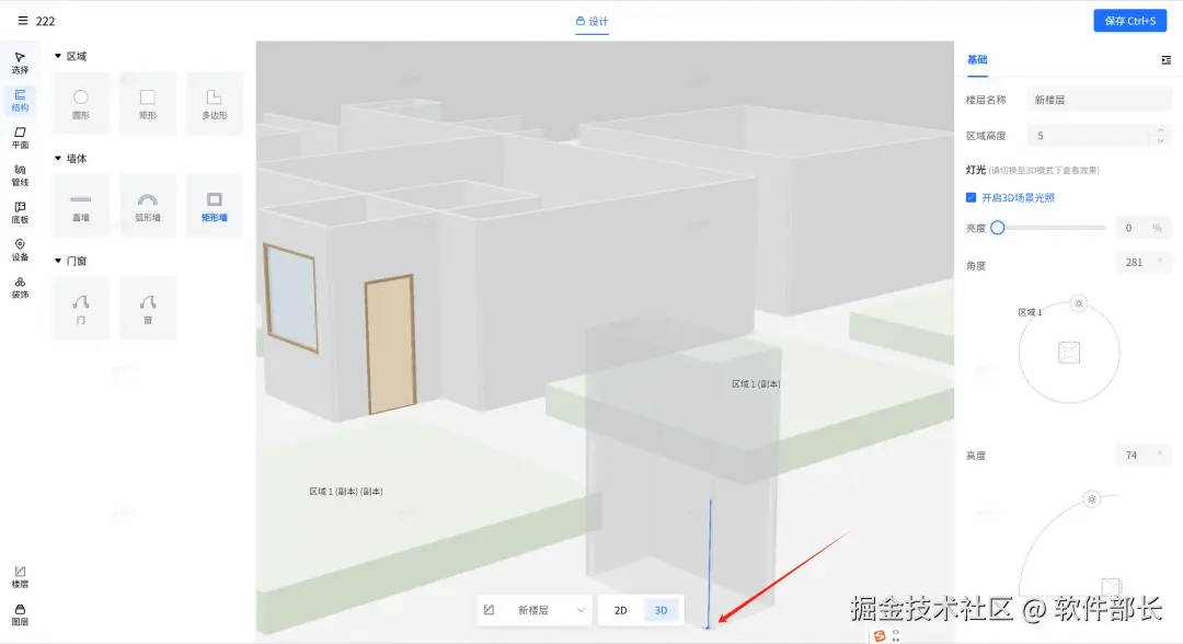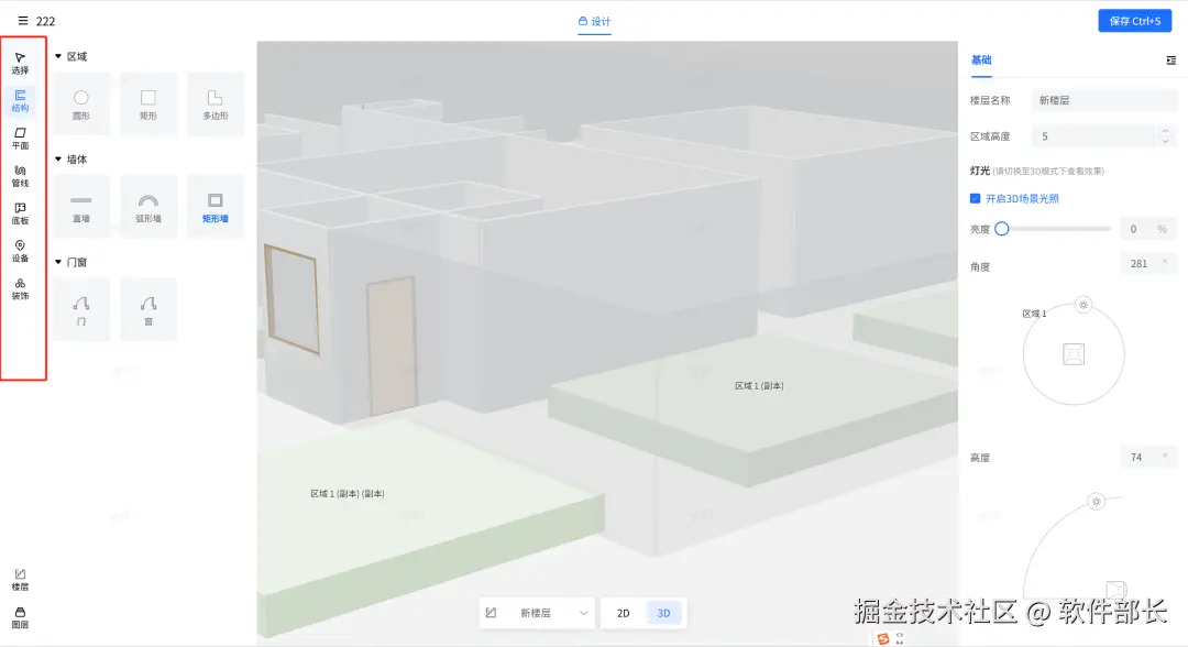 3、支持3D建筑物的基础配置能力,包括墙体、门窗等操作