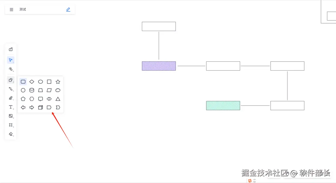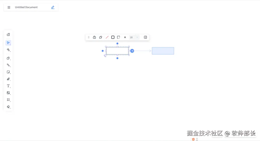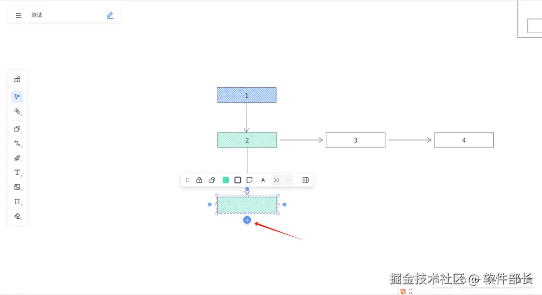 开启开关,如下图所示,通过在组件周围的蓝色快捷操作点,点击时(或者快捷键ctrl+ 方向箭头),可以直接创建一个箭头连接的图,拖动蓝色点时,可以生成链接线