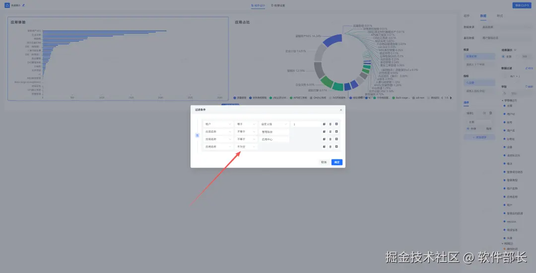 1、为首页所有支持筛选的插件(如图表、列表等),在其数据过滤条件中新增了 “为空” 与 “不为空” 两个高级判断选项。