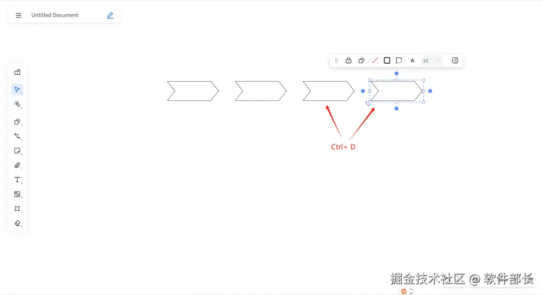 同时也支持ctrl+D的方式快速创建相同的图,这种图只是复制图(横向和纵向),不提供箭头的连接