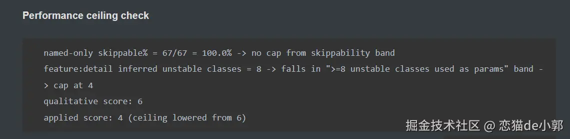 skippable%低于 50%,或者不稳定类的数量超过阈值,性能得分会强制“封顶”(例如最高只能给 4 分),无论其他地方写得再好也不行 - 知识图谱与官方文档锚定: 该项目维护了一份