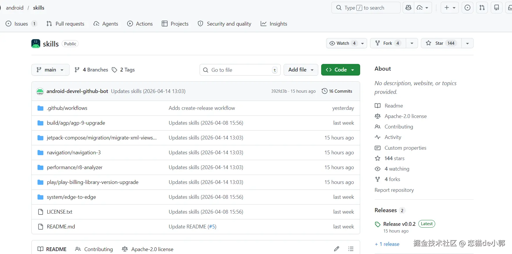 最后,android 官方也发布了对应的 skills ,目前主要是用于帮助 AI 升级和适配的技能,比如: