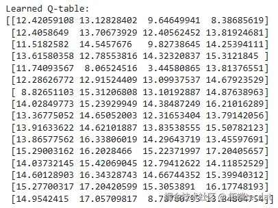 图:学习到的Q表示例(状态0-15,动作左、右、上、下)