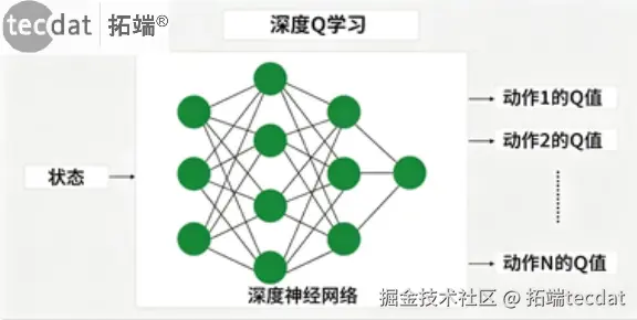 当状态空间高维连续时,传统Q表不可行,此时使用深度神经网络近似Q函数,即Deep Q-Learning。
