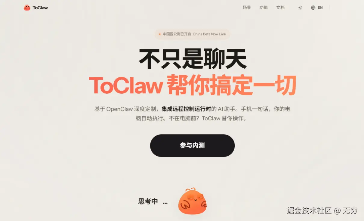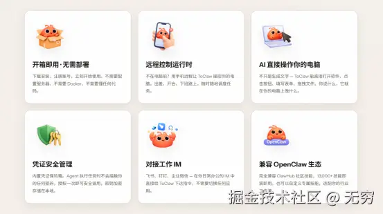 然后我刷到了ToClaw。一个国产的、基于OpenClaw的AI Agent,装在ToDesk里,说是
