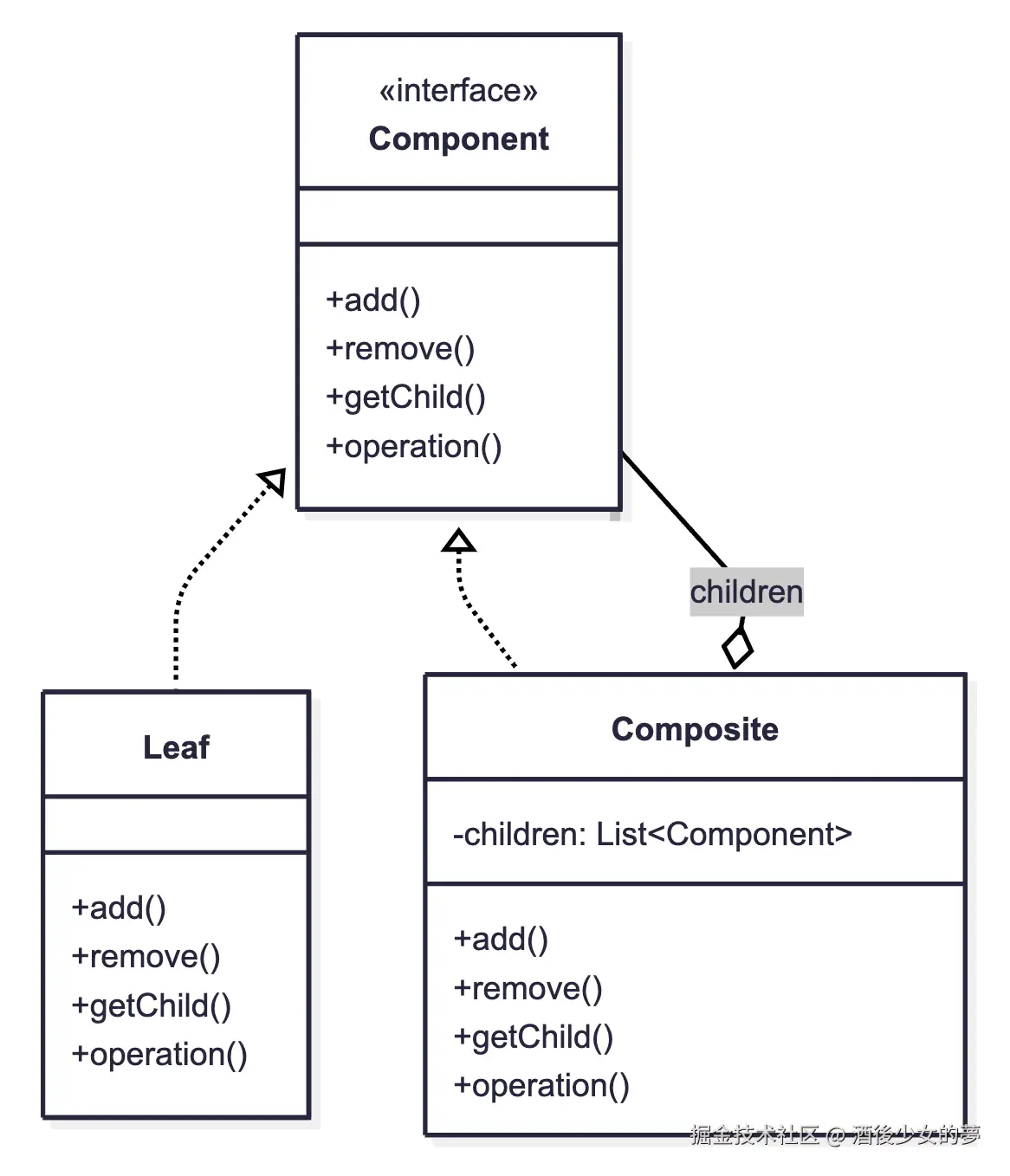 | 组合模式 | 构建层次化的对象结构 | 文件系统中文件与文件夹的树形关系 |
