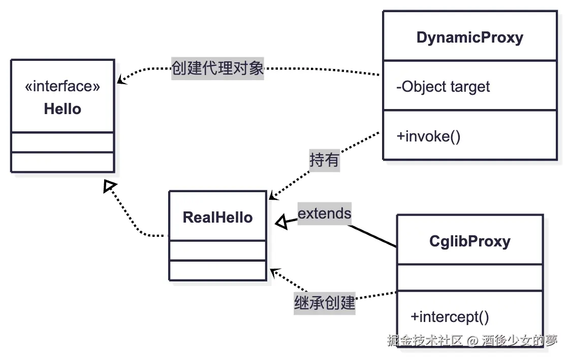| 代理模式 | 控制访问,延迟加载 | 权限控制、缓存 |