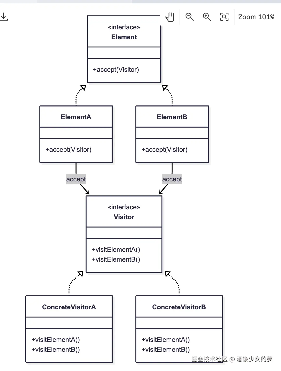 | 访问者模式 | 数据与操作分离 | 添加新操作 |
