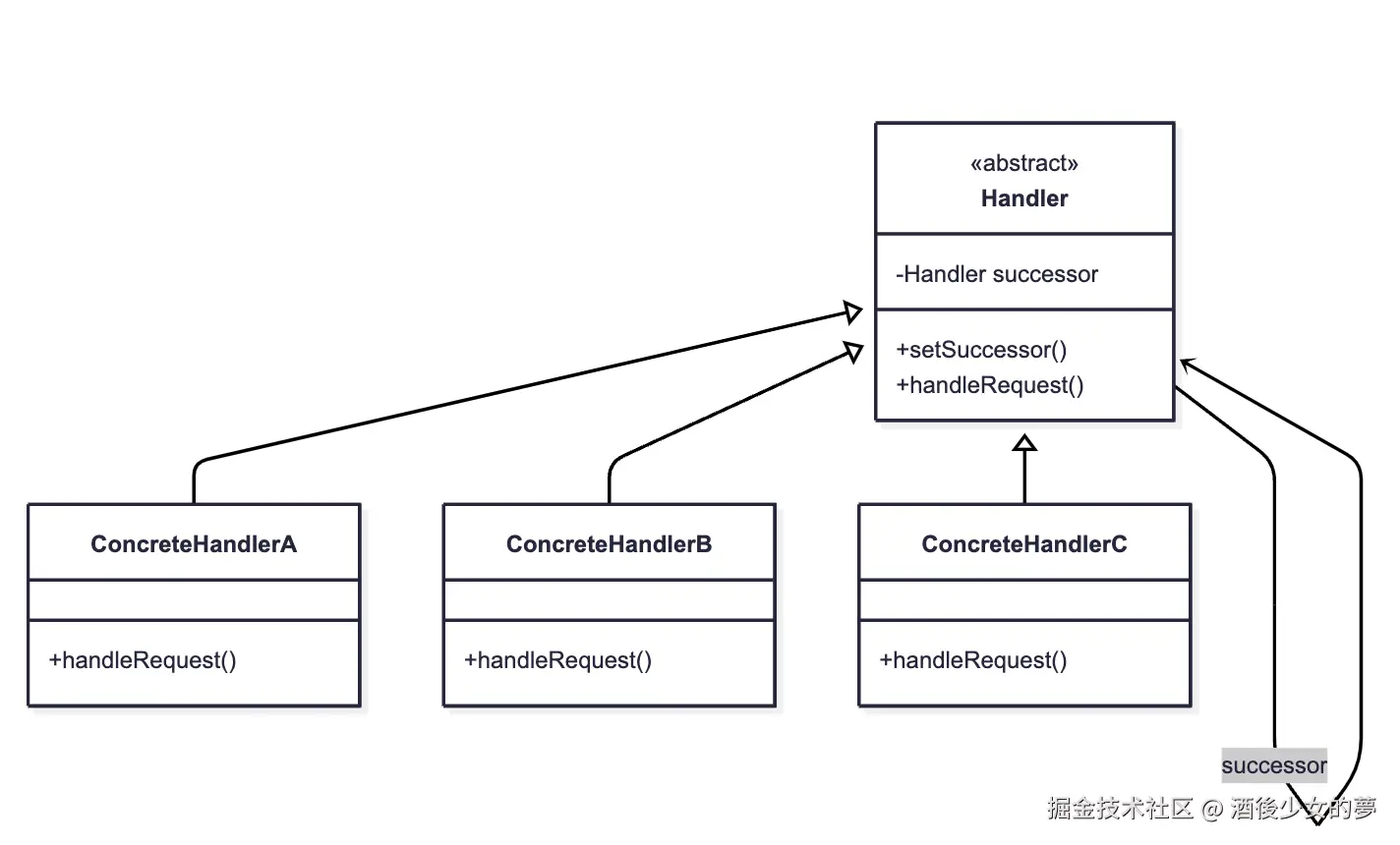 | 责任链模式 | 处理请求的链式传递 | 审批流程(员工→组长→经理→总监) |