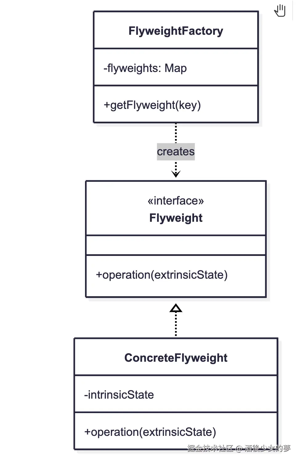 | 享元模式 | 共享细粒度对象 | 字符串常量池、棋子共享 |