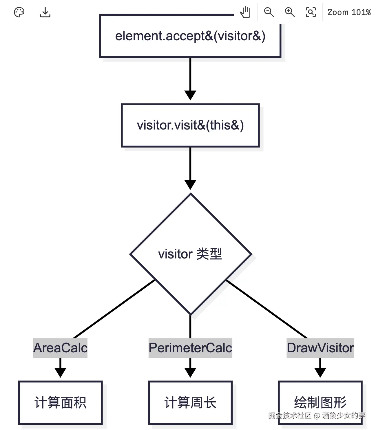 | 访问者模式 | 操作分离,添加新操作 | 编译器AST节点操作 |