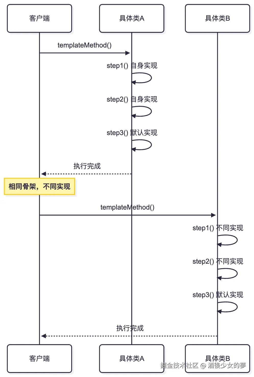 | 模板方法模式 | 骨架固定,步骤可变 | 算法框架 |