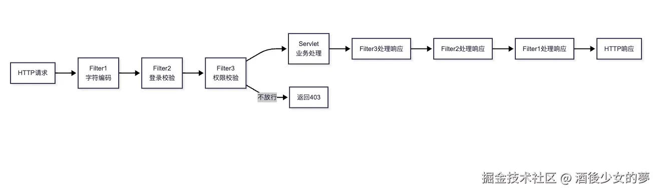 | 责任链模式 | 链式处理请求 | 多级审批 |