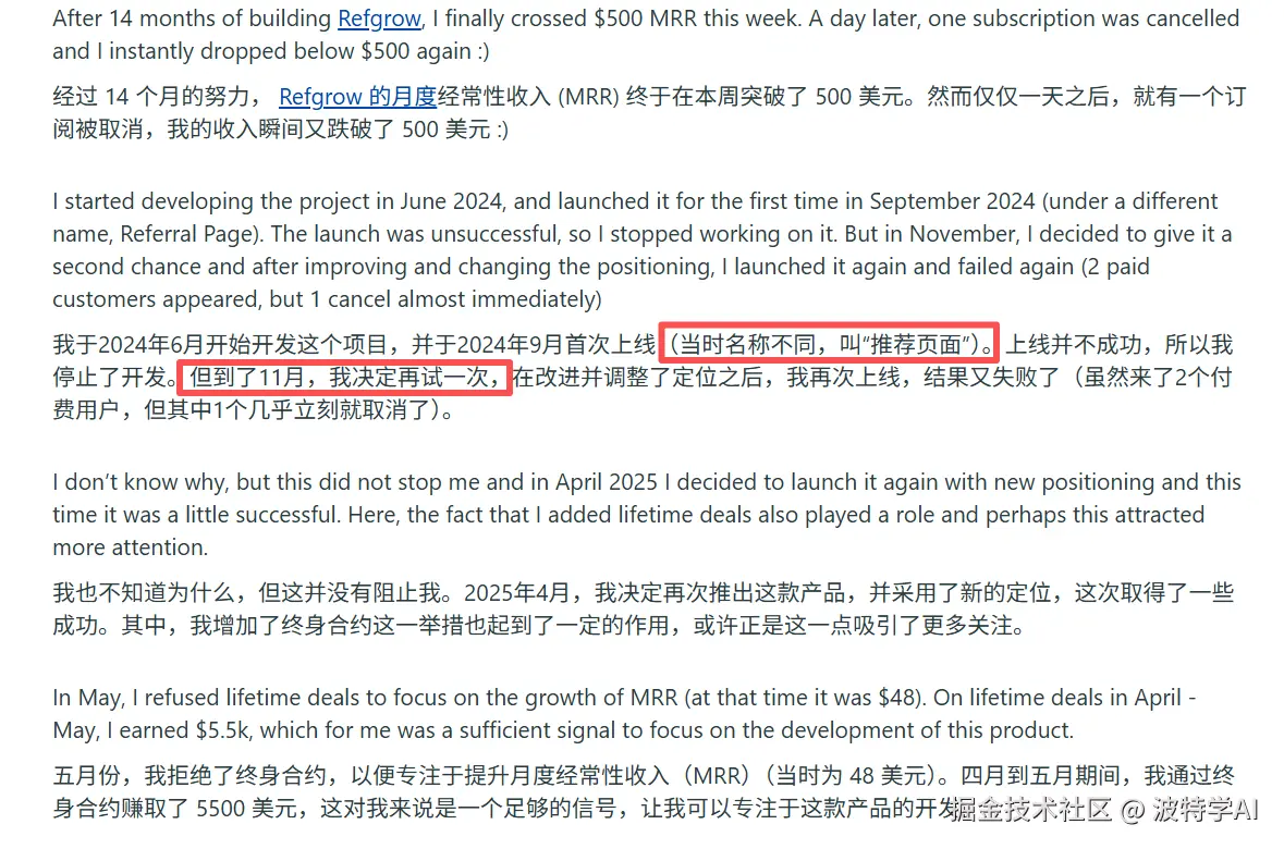 一个做 micro-SaaS 的开发者,花了 14 个月,终于摸到了 $500 MRR。