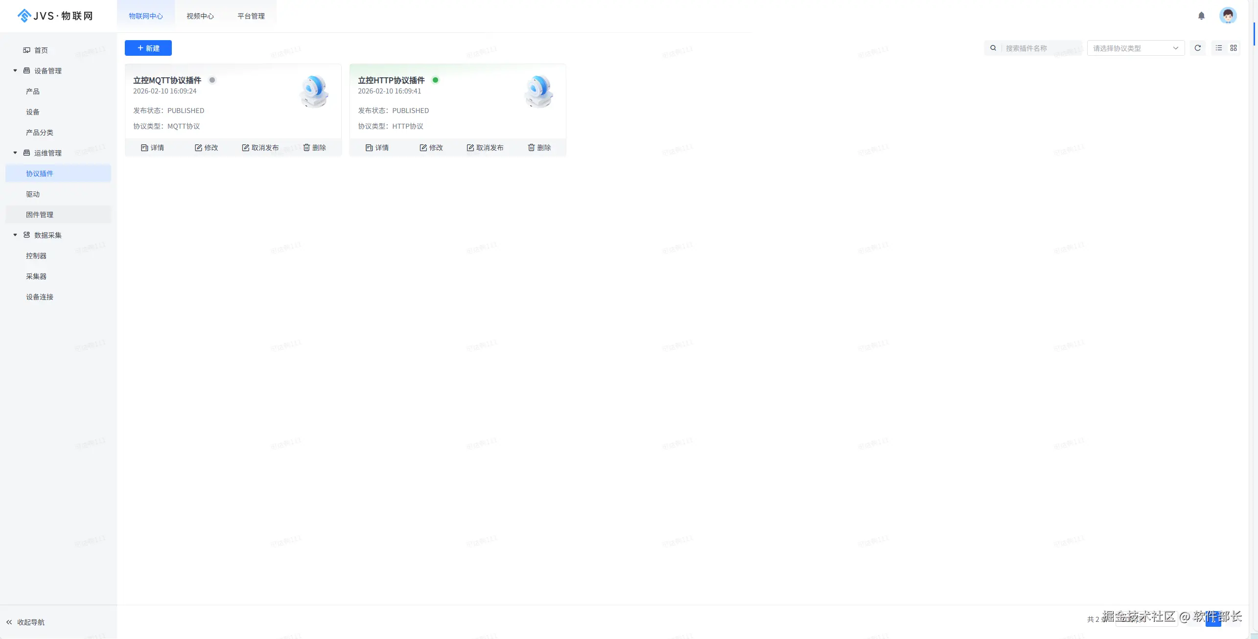 - 查看插件列表:在协议插件页面查看所有已创建的插件卡片,卡片包含以下信息: