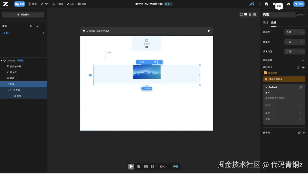如果图片长时间未显示,请确认列表组件的请求类型是否已设置为“订阅”。测试用例参考