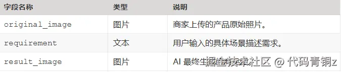 字段绑定:original_image 和 requirement 绑定自行为流输入。