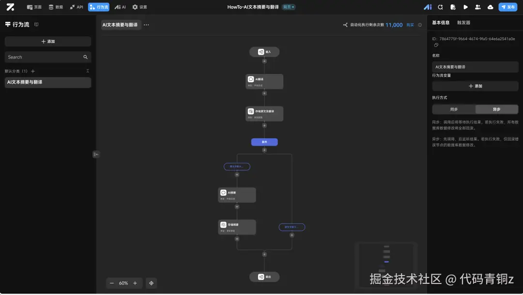 借助 Zion 的 AI Agent 与行为流能力,可以较为清晰地实现这一逻辑,并支持后续扩展为更复杂的内容处理系统。