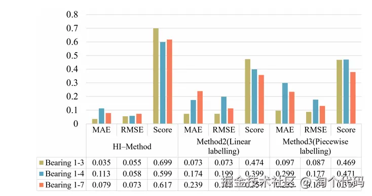 这里贴一张来自于一篇文献(Adaptive Res-LSTM Attention-based Remaining Useful Lifetime Prognosis of Rolling Bearings)的结果(这里仅做对比,并无拉踩的意思!)